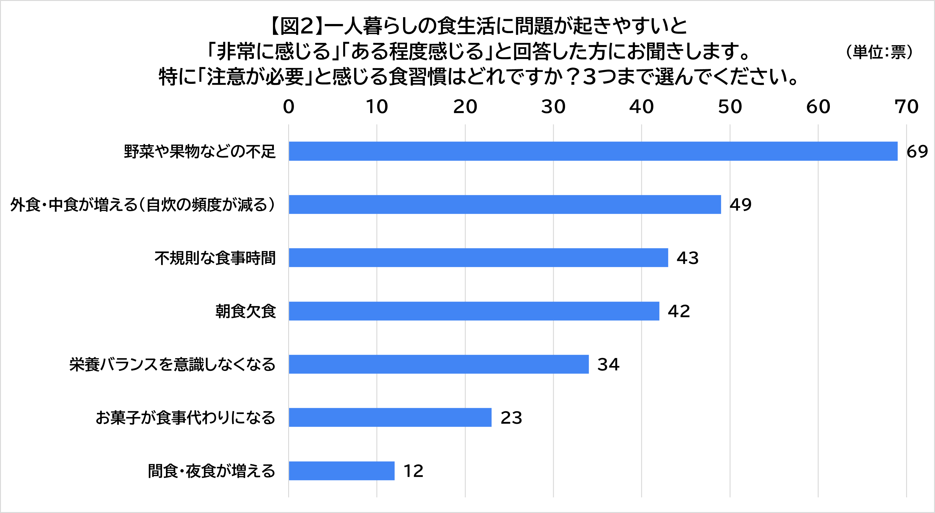 【図2】一人暮らしの食生活に問題が起きやすいと「非常に感じる」「ある程度感じる」と回答した方にお聞きします。特に「注意が必要」と感じる食習慣はどれですか?