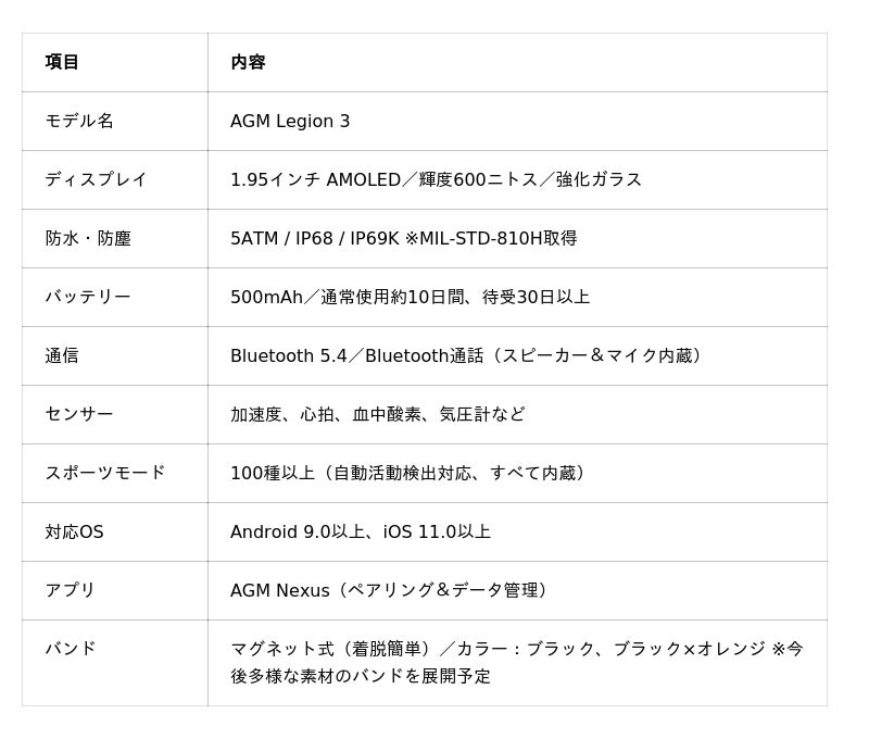 AGMは、先行販売でご好評いただいた耐久スマートウォッチ「AGM Legion 3」の日本国内向け正式販売を、本日2026年3月19日より開始しました。