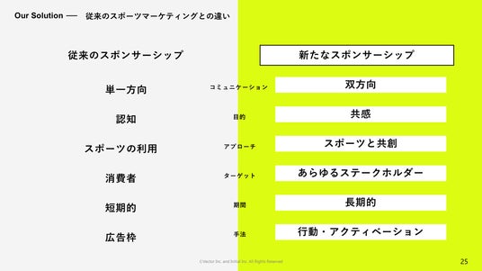 しかし、従来のスポーツスポンサーシップはスタジアムの看板やユニフォームへのロゴ掲出といった「認知」目的が中心であり、そのポテンシャルを十分に引き出せていないのが現状です 。