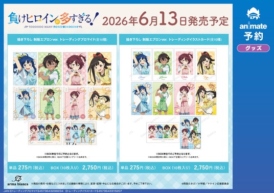 2026年6月13日(土)~2026年6月28日(日)のイベント開催期間中、アニメイト対象店舗(通販のぞく)にてTVアニメ『負けヒロインが多すぎる!』関連のキャラクターグッズをご購入1,100円(税込)毎に、店舗購入キャンペーン特典「ポストカード(全5種)」を1枚プレゼント!