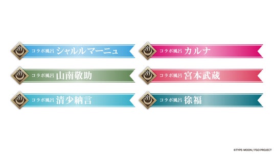 サーヴァントたちをイメージした6種類のカラフルなコラボ風呂が登場し、浴室には特別にデザインしたタペストリーを装飾します。