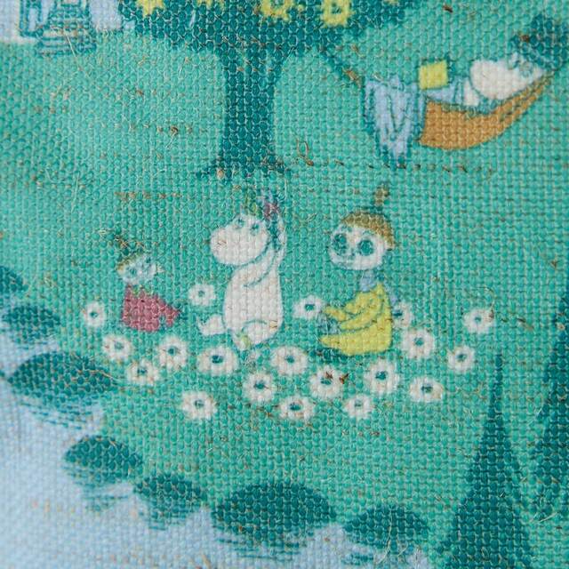 お花畑やピクニックを思わせる、ムーミンたちのイラストが爽やかなカラーで描かれていて、置くだけで空間が明るくなります。