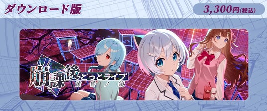 新作ノベルゲーム『崩課後どっとライブ -黄昏ノ鏡-』のニンテンドーeショップ、Steam、DLsite、ラビットフット公式BOOTHのストアページを2026年3月19日(木)に公開しました。発売日の2026年3月26日(木)には、各ストアにて『崩課後どっとライブ -黄昏ノ鏡-』の『ダウンロード版(税込み3,300円)』を購入できます。