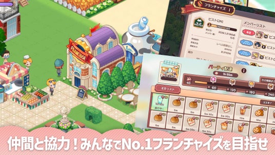 フレンドと協力して「フランチャイズ」を結成できるソーシャル機能を搭載しています。 互いの農園や料理を支援する「ヘルプ・アルバイト機能」や、協力型イベント、チャットを通じたコミュニケーションなど、他プレイヤーと連携してナンバーワンのフランチャイズを目指す要素が盛り込まれています。