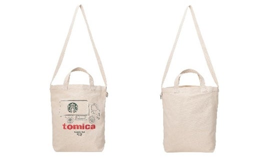 STARBUCKS STANDとトミカの世界観を組み合わせた、シンプルで使いやすいトートバッグ。通勤・通学やお出かけ、サブバッグとしても使いやすいサイズ感。男女問わず使用できます。トラックモチーフのイラストと「tomica」ロゴをフロントに配したシンプルながら別注アイテムならではのデザインです。ナチュラルな生成りカラーのキャンバス素材を使用し、日常使いしやすい仕上がり。