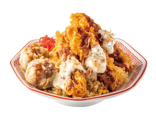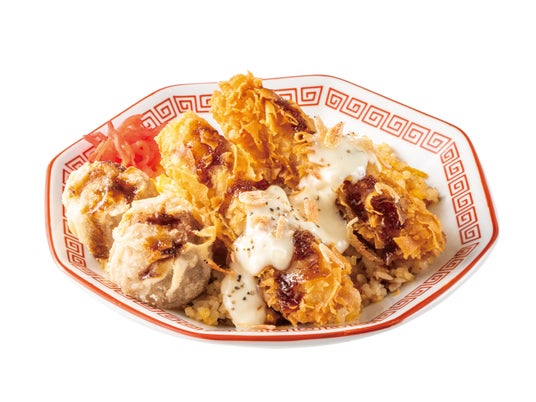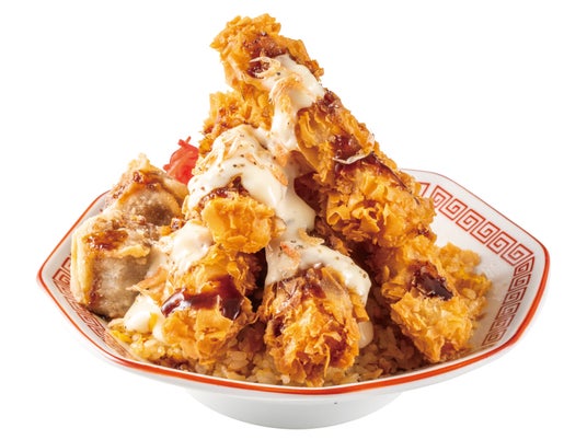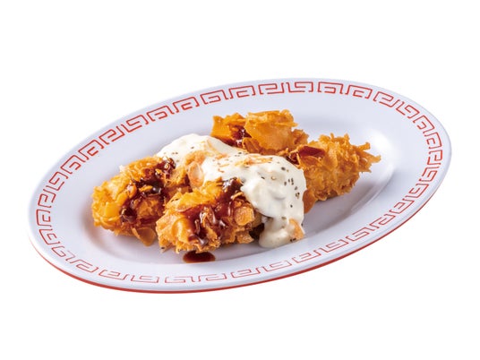 香ばしくパラっと炒めた海老チャーハンの上に、揚げたてザクザク食感の海老スティックと揚げ焼売を豪快に盛り付け、彩り鮮やかな紅海老を桜のように散らしました。とろ~り濃厚タルタルをたっぷりかけた満足感抜群の一皿です。海老スティックは2本・3本・5本からお選びいただけます。