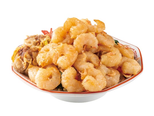 『心躍る弾むザックザク海老チャーハン』の海老カツは、おつまみにもおすすめ。そこで、『心躍る弾むザックザク海老チャーハン』と『弾けっぷりプリ海老ガーリック焼きそば』の“アタマ”だけをおつまみサイズとした『ザックザク海老スティック』と『弾けっぷりプリ海老ガーリック』も、期間限定で登場いたします。