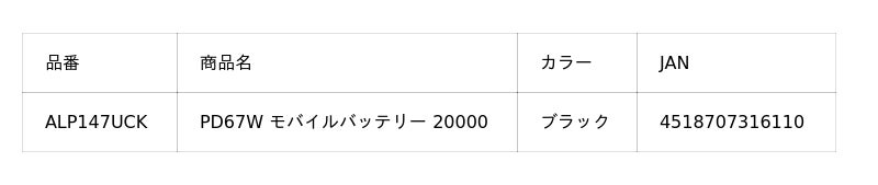 ALP147UCK PD67W モバイルバッテリー 20000