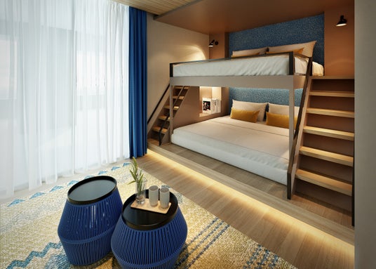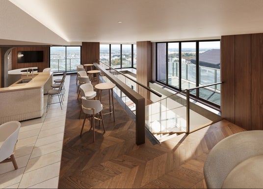 遠方の親族や友人を招いて宿泊いただけるよう、ホテルライクな『SUITE』と2段ベッドを備えた『BASE』の2タイプからなるゲストルームを完備しています。また、36階のルーフトップにはFビレッジや北広島の街並みを一望できる展望デッキ『THE ROOST DECK』を設けています。