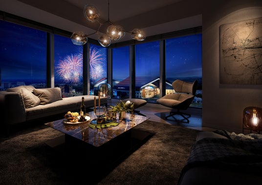 コンセプト「HANG OUT in Skyscraper」を掲げる本物件は、地上130m超の空高くに集い遊び尽くすという新しい暮らしの形を提案しており、球場を眼下に人生を謳歌する「ENTERTAINMENT CITY」、北広島の発展と共に価値を高める「ASSET MANAGEMENT」、地域の新たな目印となる「LANDMARK」の3つを柱に、Fビレッジの非日常が日常となる唯一無二のライフスタイルを提供します。