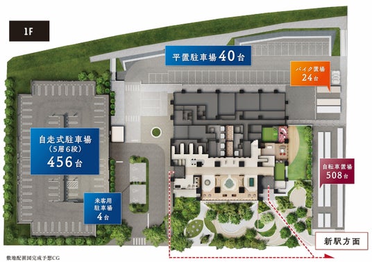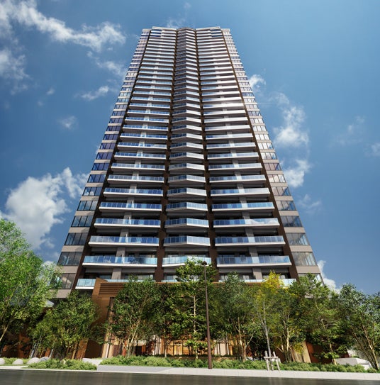 ※4.掲載の完成予想図は計画段階の図面を基に描き起こしたもので、形状・色等は実際とは異なり施工上の都合あるいは行政指導により今後変更となる場合がございます。なお、外観形状の細部・設備機器等は表現しておりません。表現されている敷地内の植栽(オプションを含む)は、施工上の都合あるいは行政指導により、設定位置・樹種・樹高・本数等変更となる場合があります。また、竣工から初期の生育期間を経た状態のものを想定しており、植物の生育を見込んで必要な間隔をとって植えています。今後周辺環境の変化に伴い、現在の眺望・景観は将来にわたって保証されるものではありません。