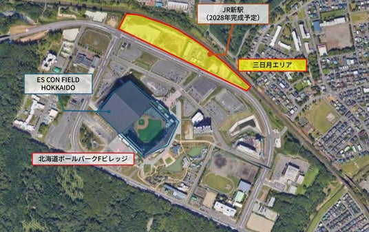 ※1.2026年3月現在、計画地アドレスは「北海道北広島市共栄」ですが、今後「北海道北広島市Fビレッジ」に町名を変更予定です。(出典:北広島市「ボール パーク地区町名・町界整備について」)
