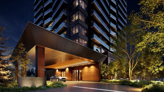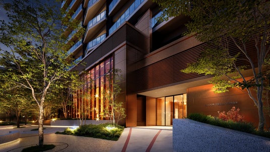 エントランスは「スタジアムゲート」および「ステーションゲート」の2か所を配置しました。球場側に設けた「スタジアムゲート」は、印象的な大型の庇を備えた車寄せを設置し、住まう方の誇りを高めるホテルライクで上質な佇まいとしました。新駅側に設けた「ステーションゲート」は、緑に包まれた心地良いアプローチから続く、うるおいを感じられる迎賓空間に仕上げました。