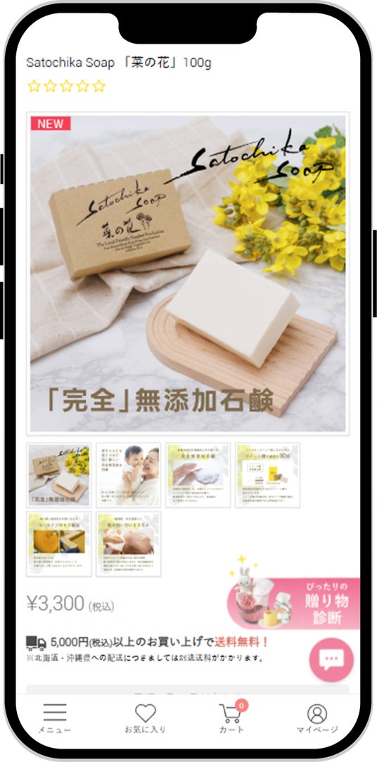 ピアリー社運営『出産祝いの通販サイトBebery(ベベリー)』内のSatochika Soap(菜の花)販売ページ