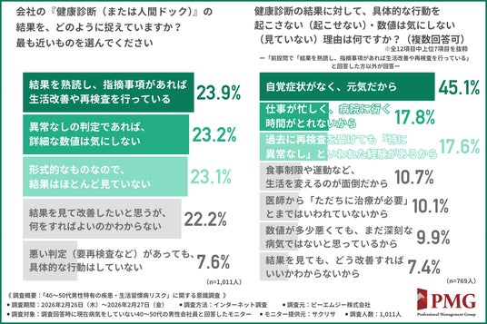 約半数が健康診断の結果に対して行動を起こさず。理由に挙がったのは「自覚症状の無さ」と「仕事の忙しさ」