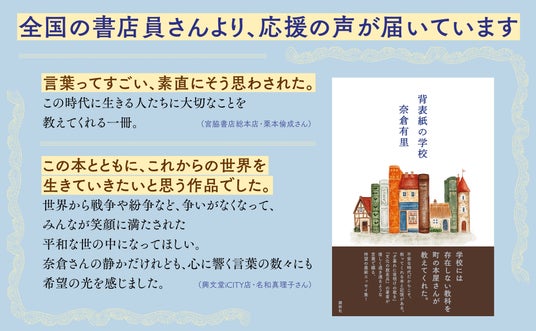 ロシア語を学ぶために単身ロシアへ留学し、日本人として初めてゴーリキー文学大学を卒業した奈倉さんの原点は、幼いころに町の本屋さんで背表紙を眺め、本への憧れを募らせた日々でした。表題作には、第二の「学校」でもあった本屋さんたちへの感謝の気持ちが込められています。