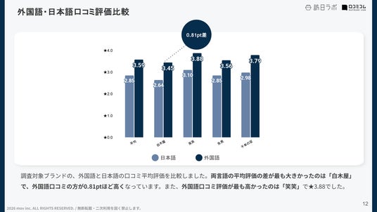 業界最大級のインバウンドビジネスメディア「訪日ラボ」及び 店舗向け集客一元化プラットフォーム「口コミコム」を運営する株式会社mov(代表取締役:渡邊 誠、本社:東京都渋谷区、以下mov)は、調査対象の最新口コミデータから、独自の『口コミ分析レポート』を発表しました。