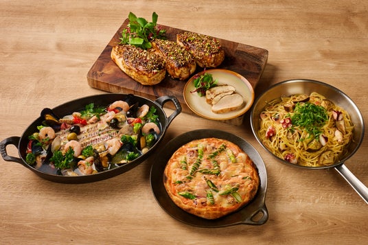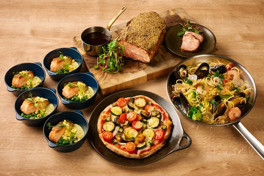 ブッフェの月替わりメインディッシュとして、4月は魚料理に「メカジキのグリル シチリア風」、肉料理に「大阪 やまつ辻田の山椒香る 豚バラ肉のポルケッタ」をご用意します。5月以降は、魚介の旨みを引き出したアクアパッツァやサーモンのムニエル、目の前で切り分ける豪快な肉料理には、地元・大阪の三晃ソースで味付けしたスパイシーなチキンや大源味噌香るローストポークをご提供します。