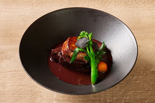 「国産牛ほほ肉の赤ワイン煮込みとフォアグラのロッシーニ風」