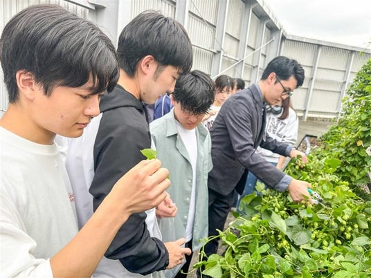 2024年5月から、多摩エリアで「キャリア形成の社会学」をテーマに掲げ、活動内容やイベントを通じて、独り立ちできる力を身につけることに取り組んでいる明星大学人間社会学科・フィールドワーク実習鵜沢クラスが、せいせきの屋上でビールの主原料となるホップの育成を担当しています。