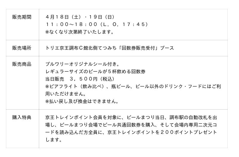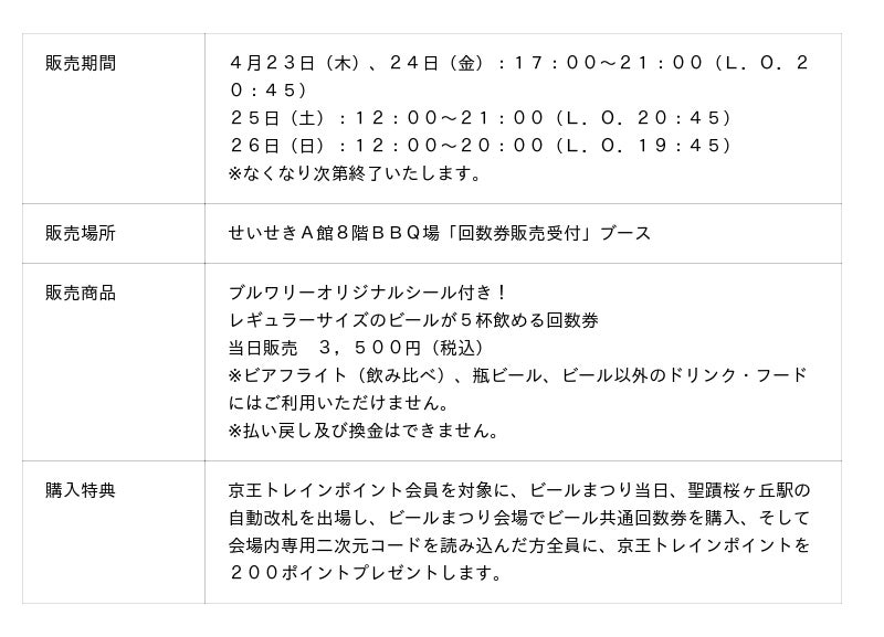 4.数量限定調布みんなのビールまつり/せいせき春のビールまつり共通回数券販売について