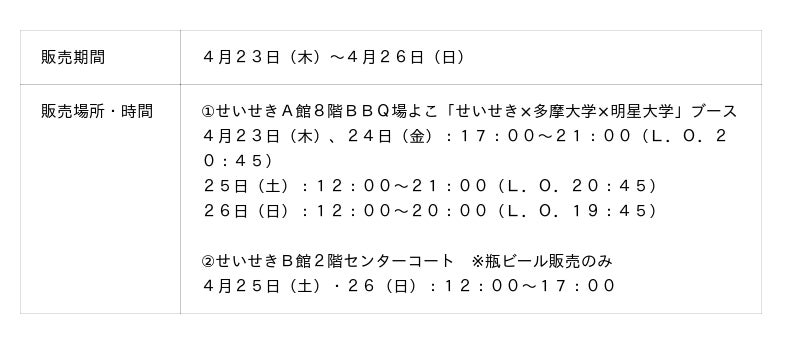 2.数量限定調布みんなのビールまつり/せいせき春のビールまつり回数券販売について