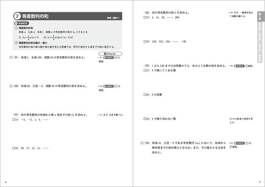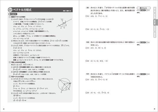 「数学B」(16単元)と「数学C」(20単元)が1冊で学習できます。余白を多めにとったレイアウトと1日の学習にはちょうどいい問題数で、無理なく続けられます。