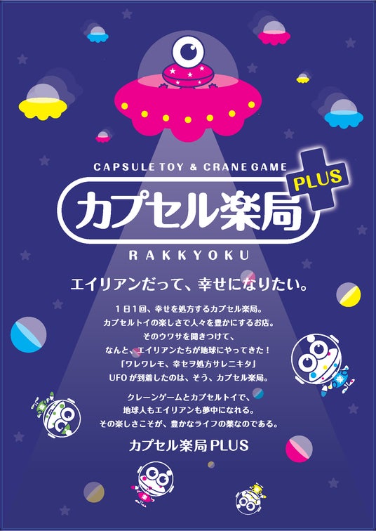 『カプセル楽局PLUS』は、従来のカプセルトイに加え、新たにクレーンゲームを売場の約半分に設置した、「カプセル楽局」の新コンセプトモデルとなる大型店舗です。157坪のゆとりある売場に、地域最大級となるカプセルトイ約700台、クレーンゲーム約80台のアイテムをラインアップします。