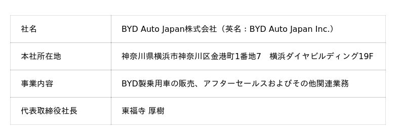 【BYD Auto Japan株式会社について】