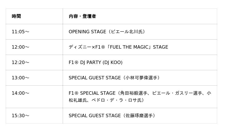 名称:F1 TOKYO FAN FESTIVAL 2026日時:2026 年 3 月 25 日(水)11:00~19:00