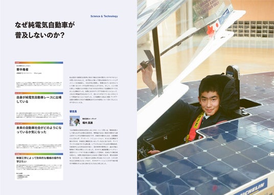 今回の年鑑では、昨年度の受賞者たちの、その後の様子を取材しました。自らの問いをさらに深め続けている姿や、審査員からのフィードバックを通じて自身のキャリア・進路を主体的に切り拓いていく姿など、10代のリアルな変容を捉えたインタビューを収録しています。