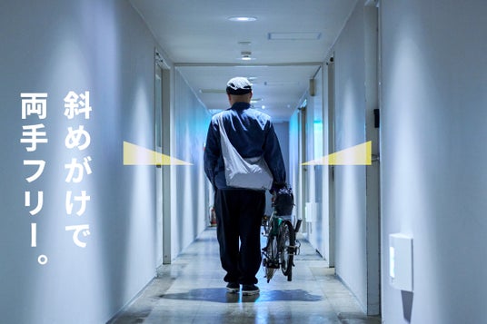 両手フリーのショルダー仕様自転車移動や通勤・散歩など、アクティブな日常シーンにも対応。