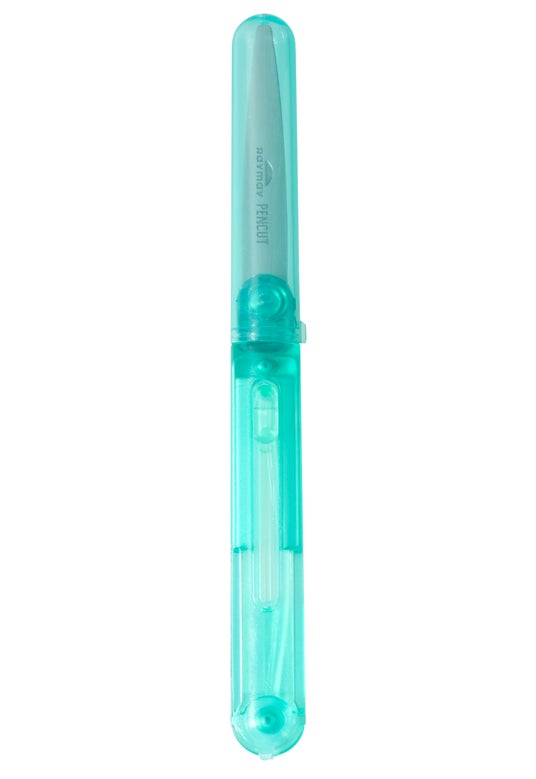 「PENCUT」は、スティックタイプのハサミで課題とされていた「切れ味の良さ」「曲線の切りやすさ」「細かい作業のしやすさ」「両利き対応」にこだわった製品です。本体のスライダーを動かすとハンドルループが出現し、コンパクトながら一般のハサミのような切れ味と使いやすさを実現しました。