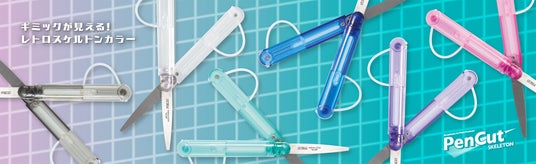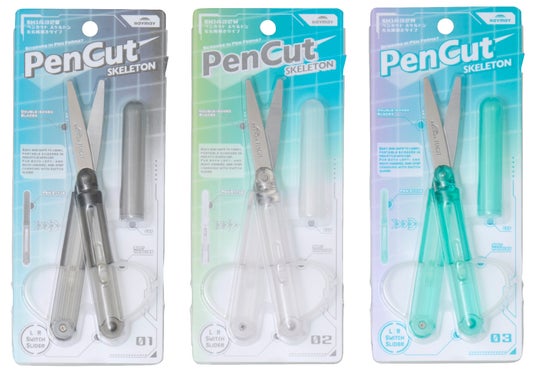 ペンのようにスリムで持ち運びやすいペン型ハサミ「PENCUT(ペンカット)」に、新たにスケルトンカラーが登場します。透明なボディから透けて見えるハンドルループの動きは、左右両利きに対応した当社独自のギミックで、見た目にも楽しさを感じられるデザインです。