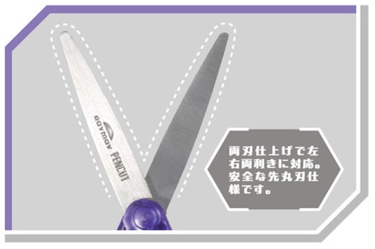 両刃仕上げで左右両利きに対応。安全な先丸刃仕様です。