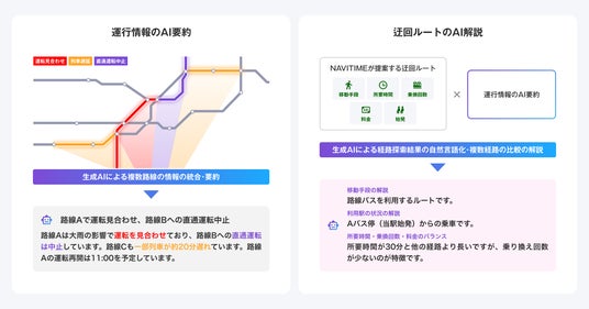 株式会社ナビタイムジャパン(代表取締役社長:大西啓介、本社:東京都港区)は、2026年3月19日(木)より、総合ナビゲーションアプリ『NAVITIME』において、鉄道の遅延・運休発生時におけるユーザーの意思決定をサポートする新機能「運行情報と迂回ルートのAI要約」と「運行情報のタイムライン表示」を提供開始いたします。