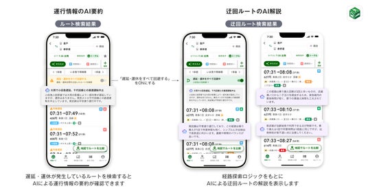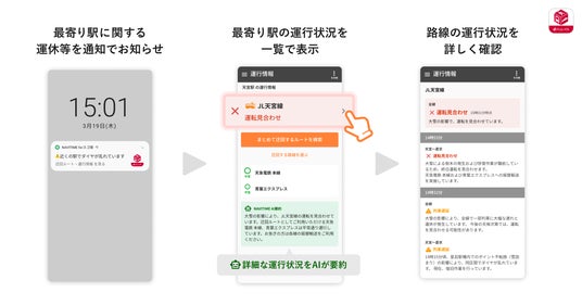 ~迂回ルートをAIが解説する機能や、運行情報のタイムライン表示・PUSH通知など、遅延発生時の直感的な状況把握と意思決定をサポート~