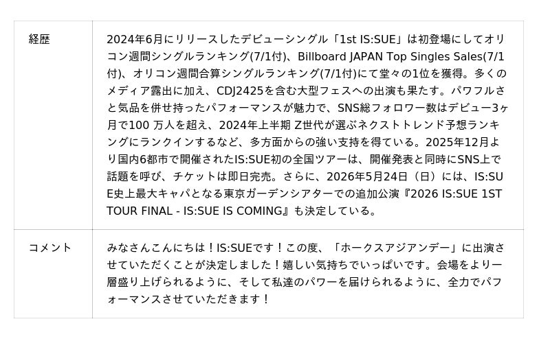 22日(金)は「IS:SUE」、23日(土)は「Kep1er」の出演が決定!