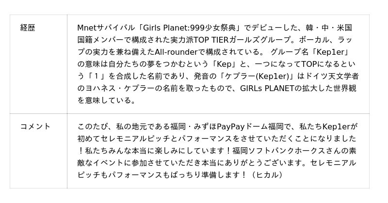 5月22日(金)~24日(日)の北海道日本ハムファイターズ戦で、「ホークスアジアンデー」を開催!当日は、野球・グルメ・音楽など様々な切り口でアジアを感じられるイベントをお楽しみいただけます。ゲストとして、22日(金)は日本の4人組ガールズグループ「IS:SUE」(イッシュ)、23日(土)は韓国の6人組ガールズグループ「Kep1er」(ケプラー)の出演が決定!期間中、みずほPayPayドーム屋内外では多種多様なアジアングルメを展開します!