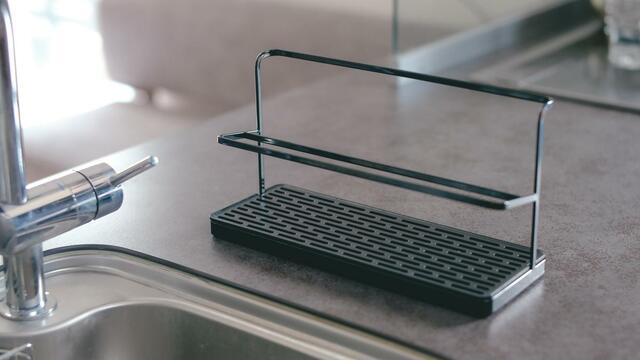 これまでは、不安定に立てかけたり、シンクの端に置いたりと定まらなかったんですが、ここに置くようになってからは見た目もすっきり。
