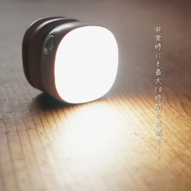 最大18時間の点滅モードを活かせば、災害や停電などの緊急時にも暗闇の中で存在を知らせるサインに。