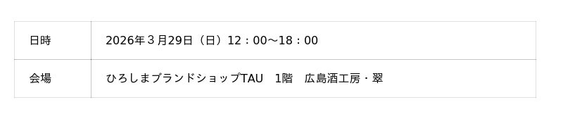 【日時】2026年3月28日(土) 【場所】ひろしまブランドショップTAU(東京都中央区銀座1-6-10)
