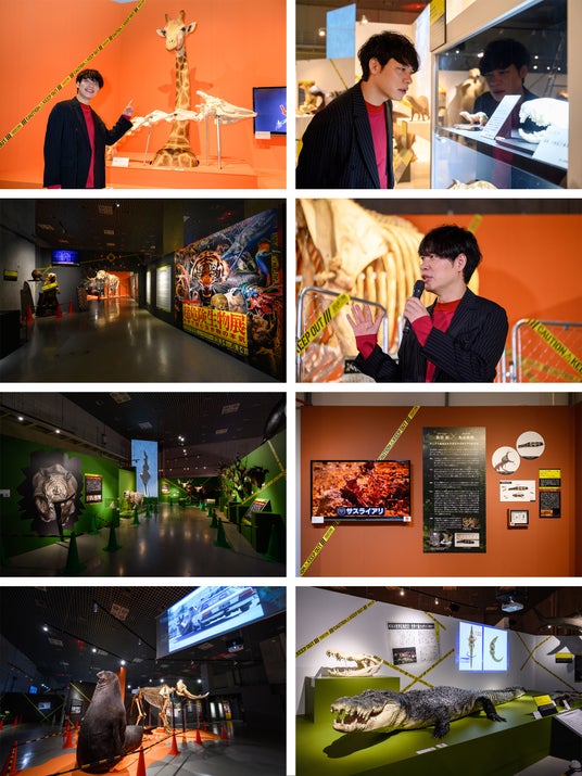そして今日展示を見てびっくりしました!世界的にも貴重な標本もたくさんあり、エリア別に研究室のような世界観で構成されていて、まるでアトラクションのようでした。奥に進むにつれて没入感が増していき、自分も研究員の一員なったような気持ちになりました。その没入感を感じて頂くには、是非私の音声ガイドを聞いて頂きたいと思います。音声ガイドを聞きながら危険生物を見ると、より楽しく、より正しく学べると思います。特に注目の危険生物はやはりキリンです。草食動物で、目を見る限りおとなしくて可愛らしい。でも、映像で見るとネッキングという自分の首を振り回して戦う一面もある。それもとんでもない威力で。これを見たら、自分が気軽に「麒麟です」なんて言うのが申し訳なくなりました。様々な危険生物の武器を見て、自分の武器は何か考えてみました。人を思いやる心であったり、人間には人間にしかない武器が見つかるかもしれません。そんな素敵な発見ができる展覧会だと思います。