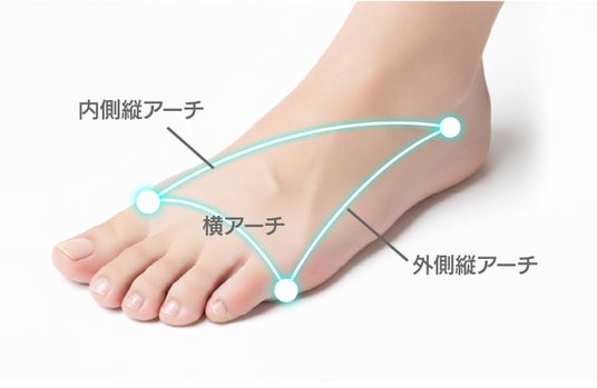 土踏まずだけでなく、足裏を縦に走るアーチラインと横に走るアーチライン