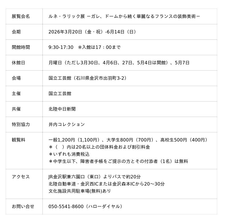 国立工芸館(石川・金沢市)でラリックを中心にフランス装飾美術の名品が一堂に。アール・ヌーヴォーとアール・デコの輝きを味わう展覧会がいよいよ開幕!