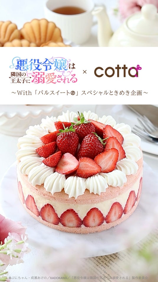 製菓・製パン用の材料・レシピなど2万点以上取り扱う日本最大級のECサイト「cotta(コッタ)」(https://www.cotta.jp/)を展開する株式会社cotta(所在地:大分県津久見市、代表取締役社長:黒須 綾希子)は、TVアニメ「悪役令嬢は隣国の王太子に溺愛される」とのコラボレーション企画として、レシピ動画を各種配信するほか、プレゼントキャンペーンを実施します。