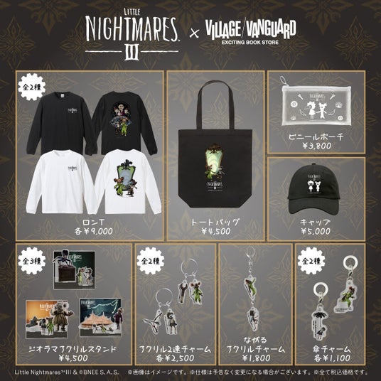 物語の舞台を再現したジオラマアクリルスタンド(キャンディ工場/ネクロポリス/カルネヴァーレ)など、作品の不穏な世界観をそのまま切り取ったアイテムを展開。