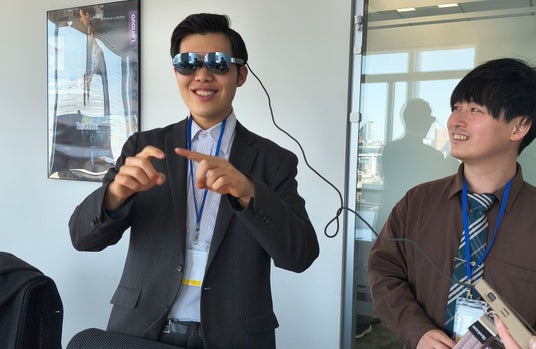 貸出いただくスマートグラスの体験をする様子