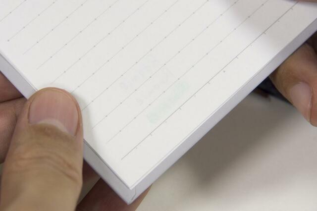 シャーペン、赤ボールペン、蛍光ペンを使用した時の裏透けもほとんど気にならず、一般的なノートと同じように使えますよ!