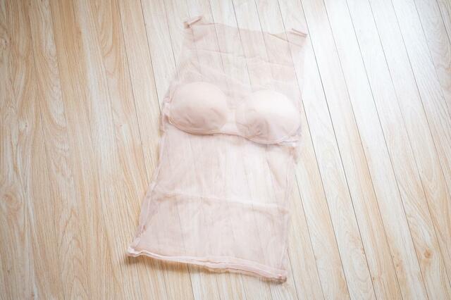 ストラップがないので下着に困る服もこれなら気軽に着られます。